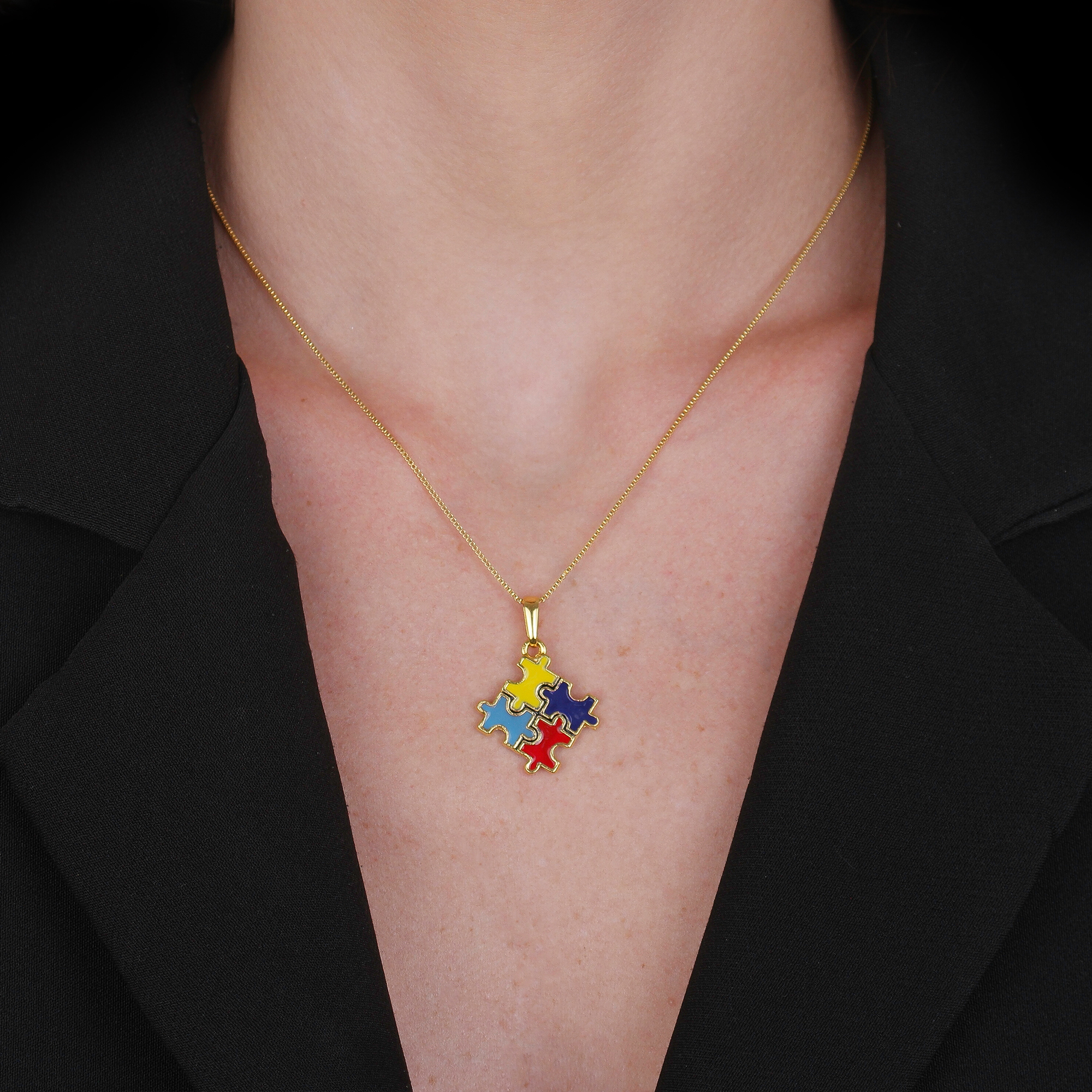 Colar Dourado Autismo Formato Quebra-Cabeça